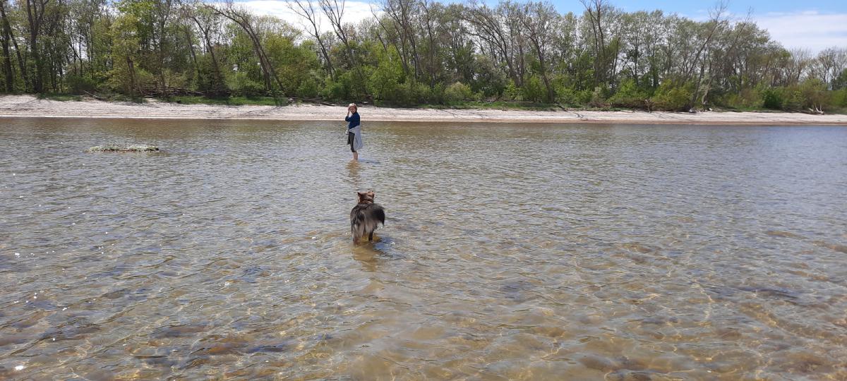 Damit Dara nicht immer wieder ans Ufer zurück läuft, kam Karin zu uns.