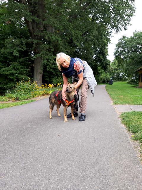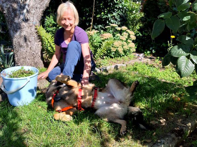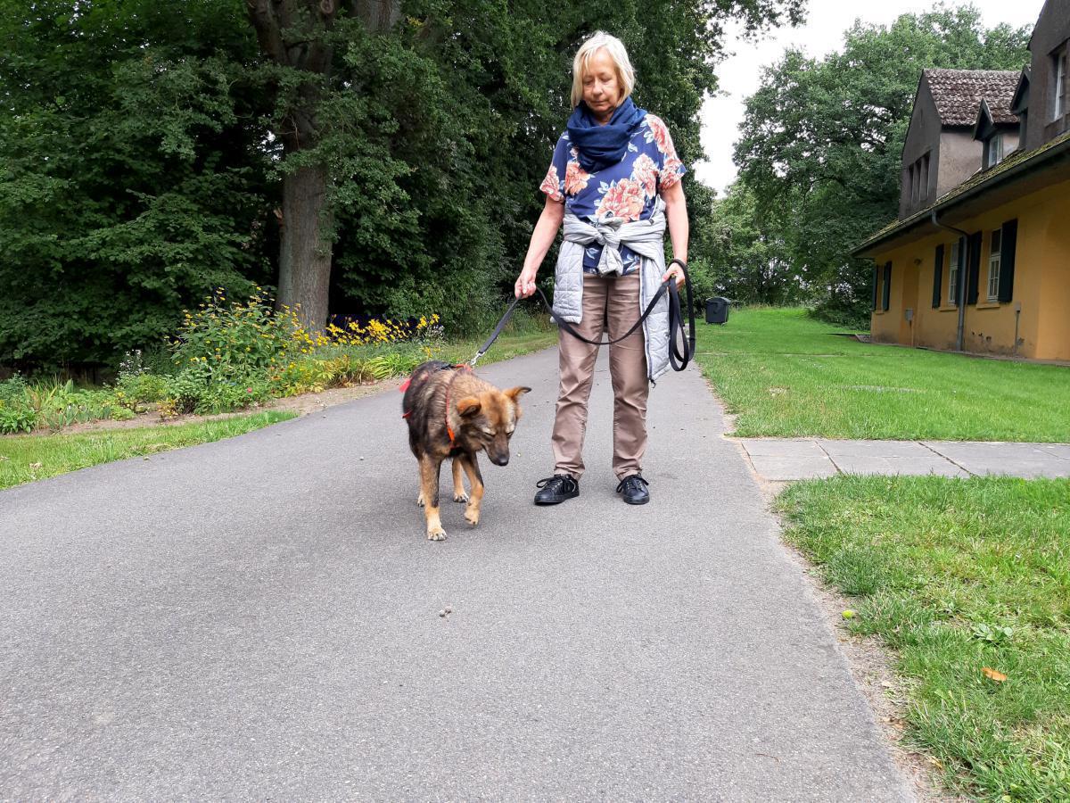Aber sie erinnerte uns mit ihrem Verhalten auch an unseren ersten Spaziergang mit Rico, als Karin mal abseits des Weges musste. ;-))