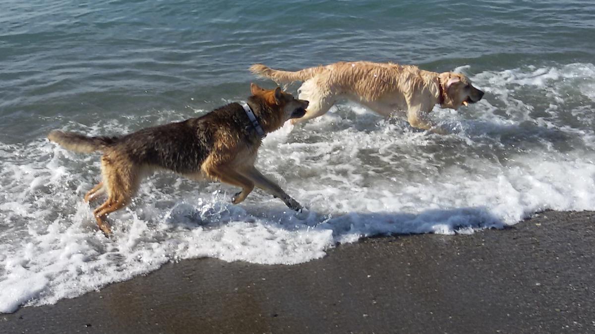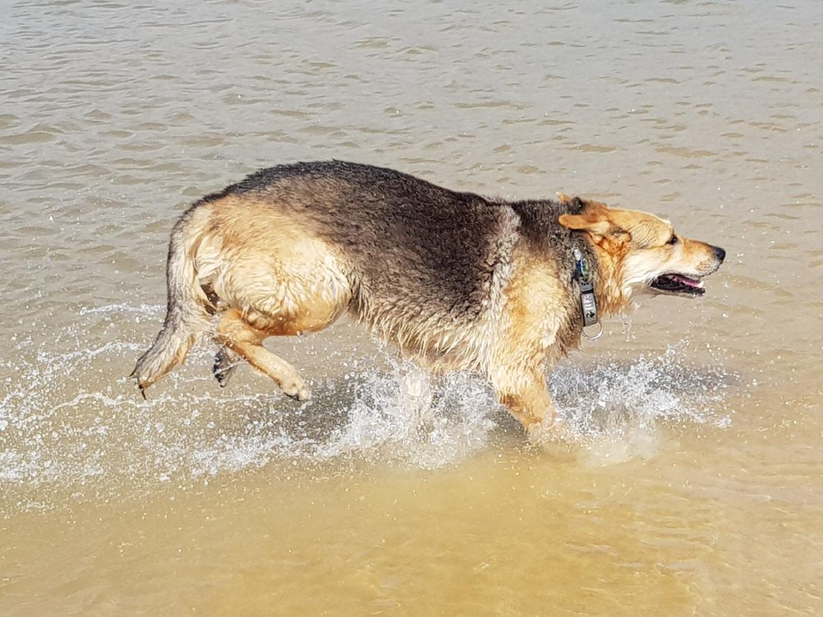 Unsere Sira war eine Wasserratte, wohl eher ein Kamel. Sie konnte Kilometer vorher Wasser riechen und strebte nur auf direkten Weg hin unabhängig von der Jahreszeit. Bei einem Urlaub in Dänemark, es war Februar stürzte sie wie wild vom Ferienhaus in Richtung Meer und ab ging die Post. Alleine machte es ihr doch weniger spaß, also Schuhe aus und Hosen runter... Ich bekam Eisbeine und Sire entledigte sich anschließend in einer Gaststätte des gesoffenen Salzwassers, das ich dann aufwischen durfte.