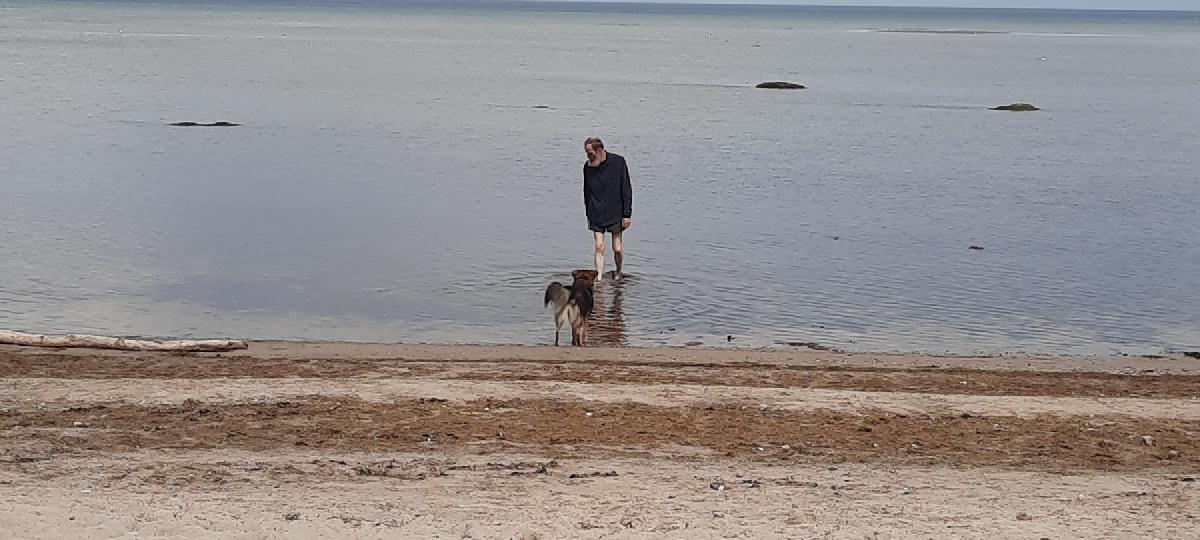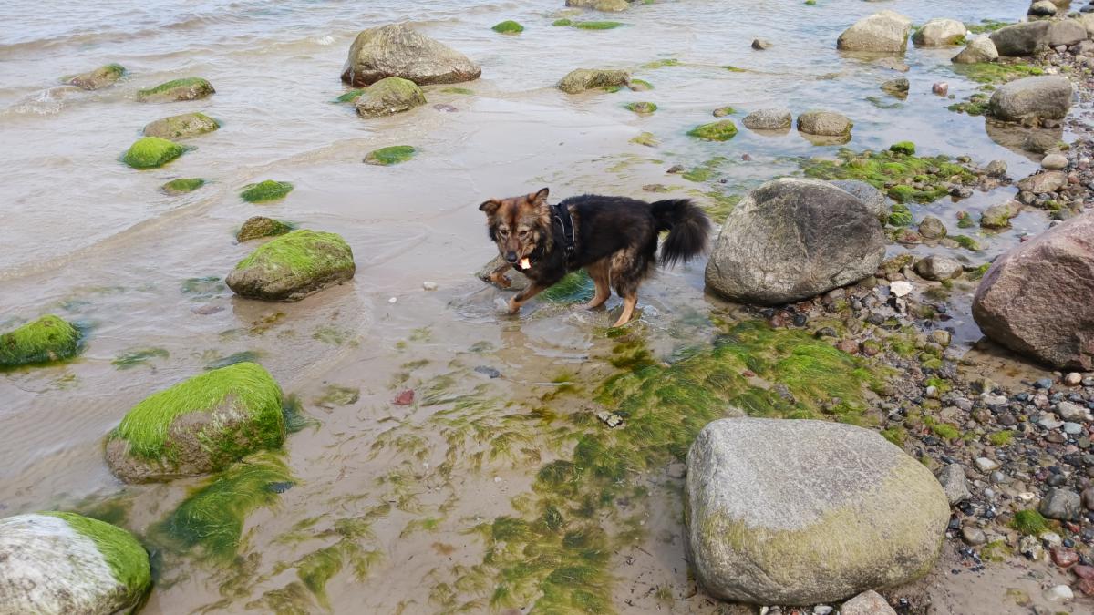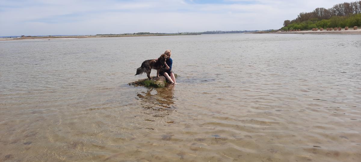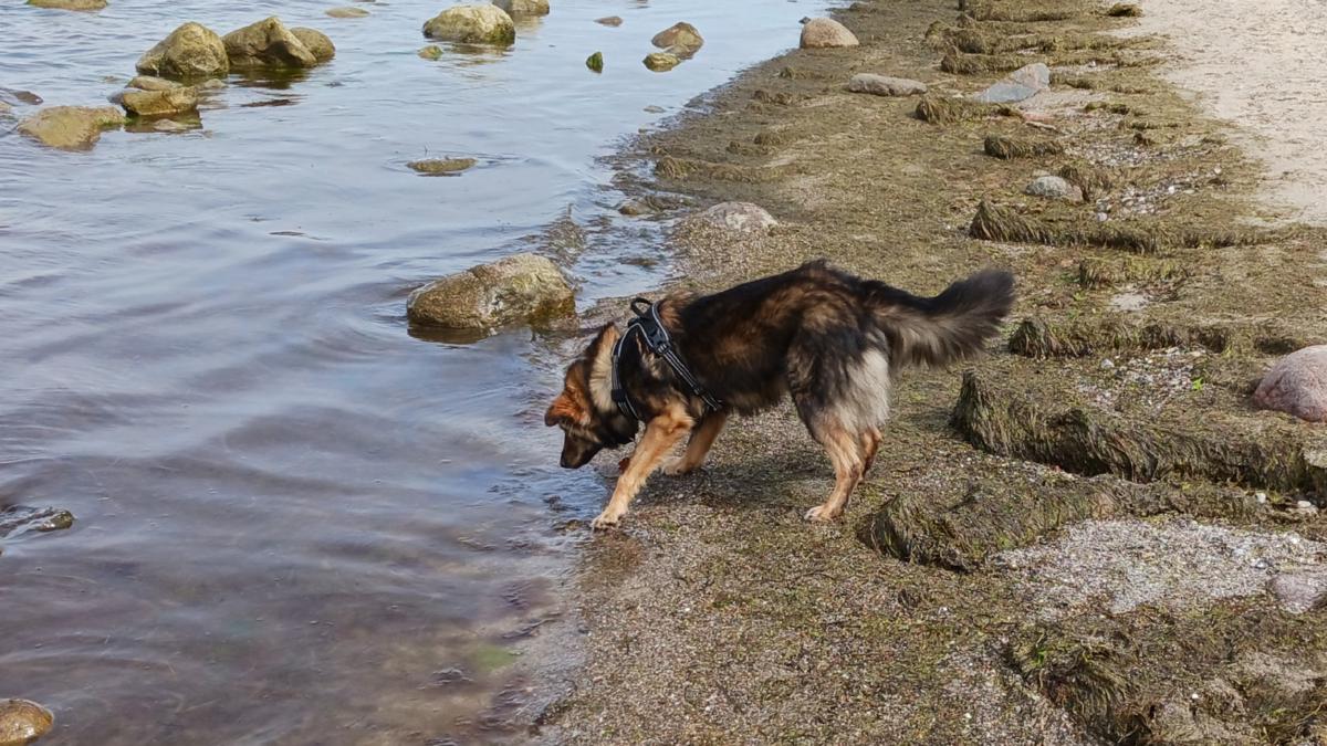 Der Strand in Gollwitz bietet sich für eine weitere Gewöhnung von Dara an das Wasser an, da es lange sehr flach ist