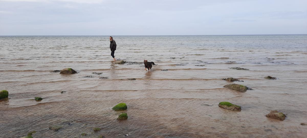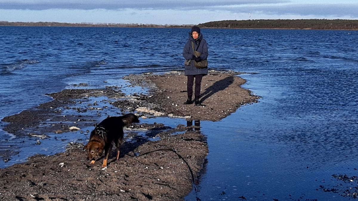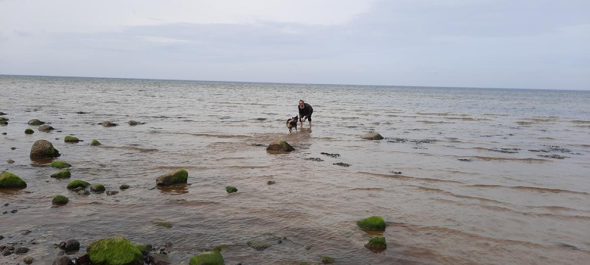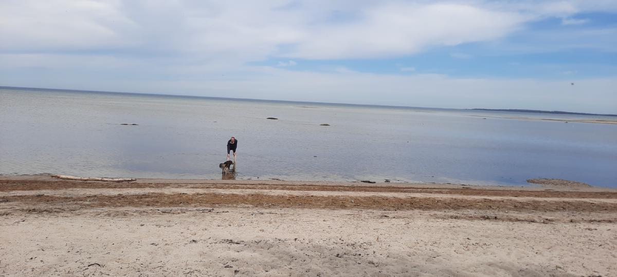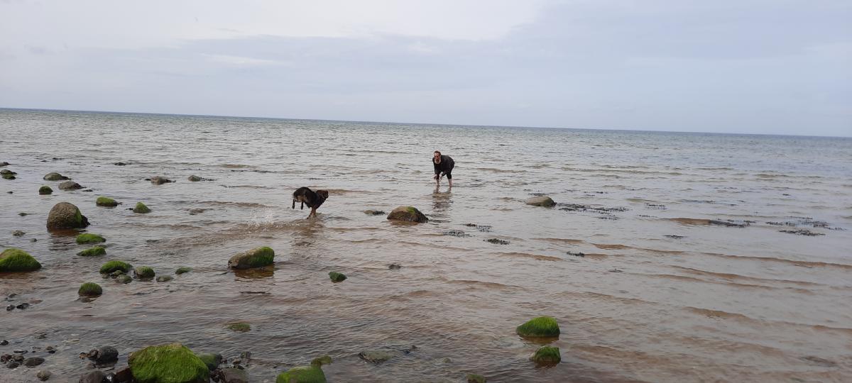 Der Strand in Gollwitz bietet sich für eine weitere Gewöhnung von Dara an das Wasser an, da es lange sehr flach ist