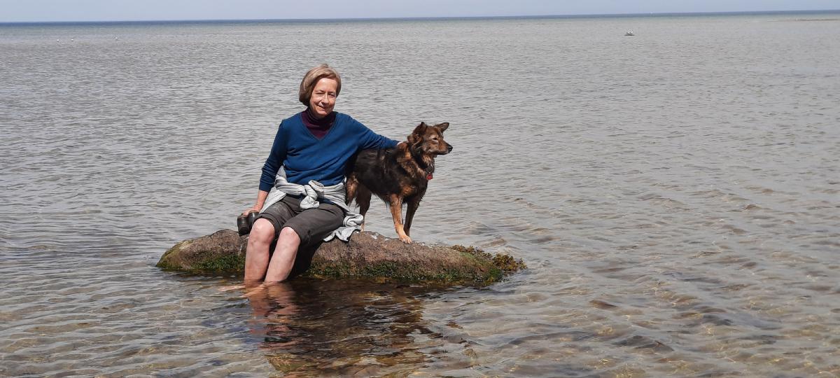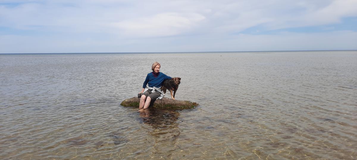 Damit Dara nicht immer wieder ans Ufer zurück läuft, kam Karin zu uns.