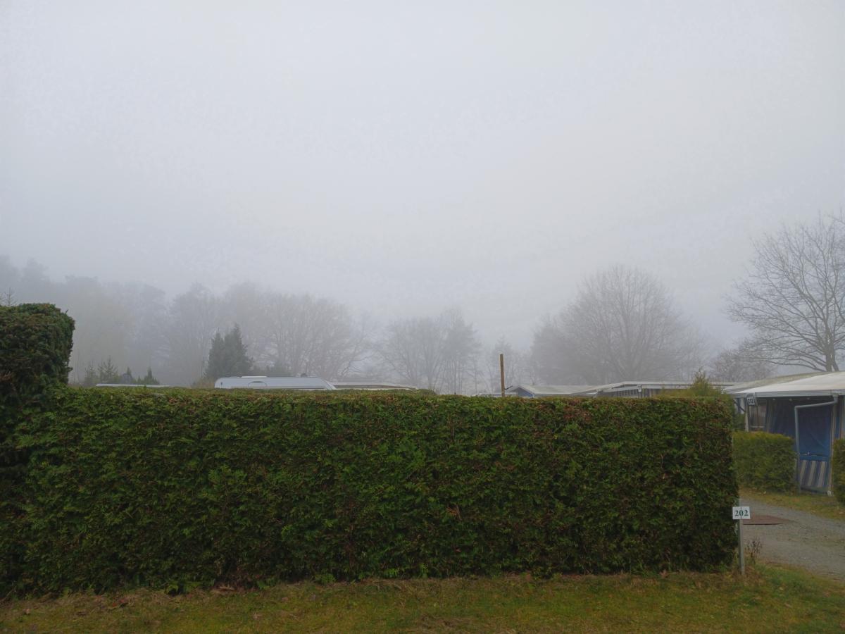 Am nächsten Morgen war es zunächst so diesig, so dass wir die umliegenden Bäume anfangs nicht erkennen konnten. Am weiteren Vormittag schien wieder die Sonne.