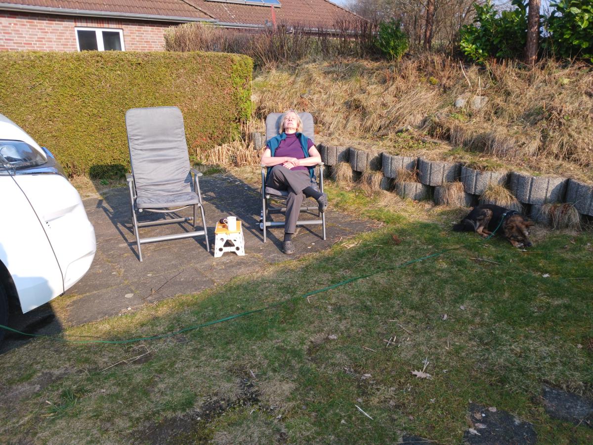 Die Fahrt quer Feld durch die Landen. Dara fand die Womo-Fahrt wieder zum K....., so dass Karin bei der Ankunft am Stellplatz in Winsen-Luhe ihre Hinterlassenschaft beseitigen musste.