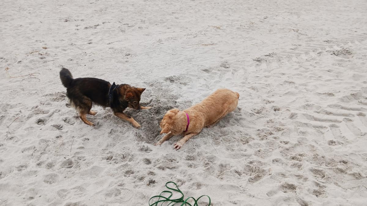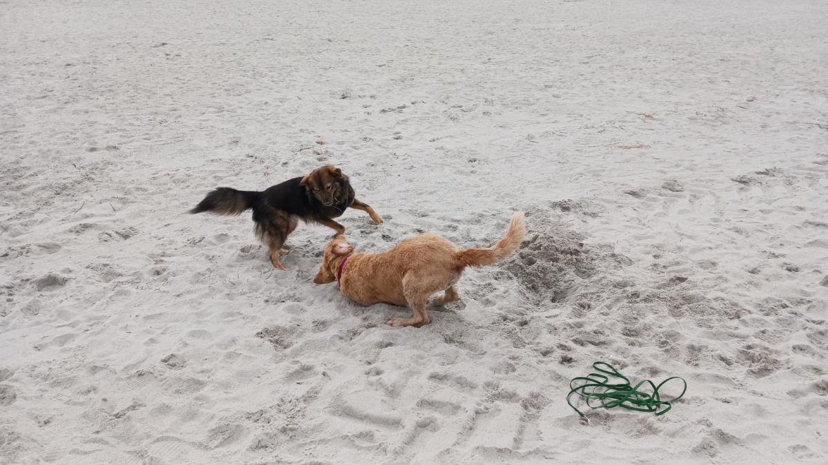 Eine weitere Begegnung am Strand mit einem 6 Monate alten Rüden.