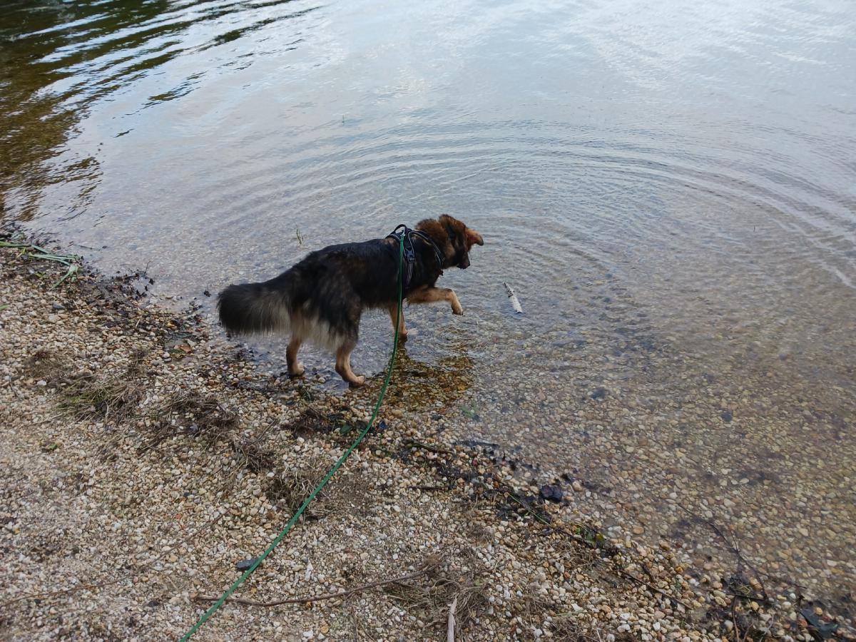 Karin war mit Dara auf einen längeren Spaziergang von Görries nach Neu Mühle. Unterwegs gab es eine Begegnung mit einer anderen Hundehalterin. Ihr Kleiner musste an der Leine bleiben und der Große durfte dann mit Dara toben. Irgendwann waren Beide außer Sicht. Während der andere Hund zurück kam, blieb Dara verschwunden und reagierte weder auf Rufe noch auf die Pfeife.