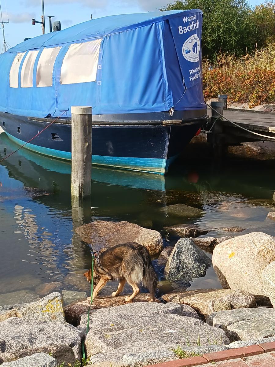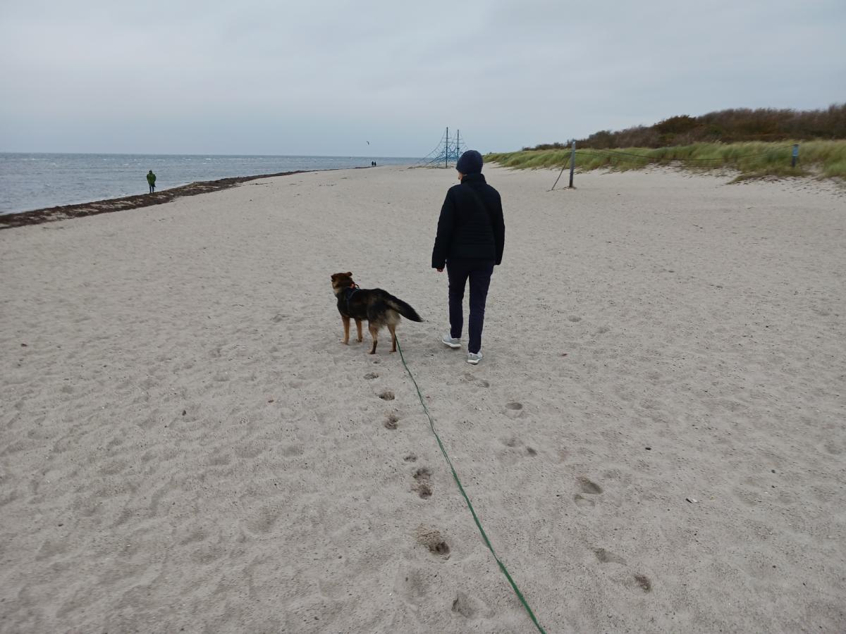 Zum Glück schwamm es noch oben, also Schuhe, Socken, die Hosenbeine hochgekrämpelt und rein in die kalte See. Meine Versuche das Spielzeug mit der Leine einzufangen schlugen fehl. Wind und Wellen trieben es dann doch immer näher ans Ufer.