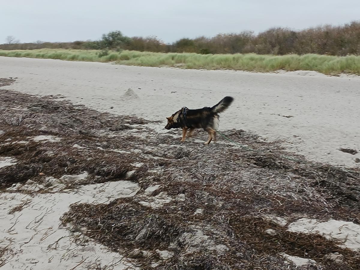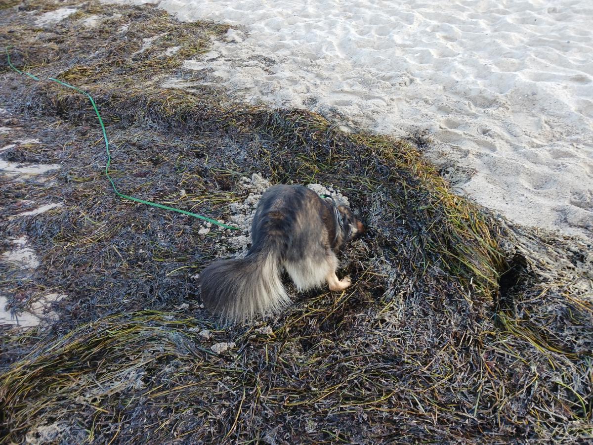 Irgendetwas hatte Dara's Neugier erregt und sie buddelte sich in das Gemisch von Seegras und Sand. Allerdings ohne Erfolg.